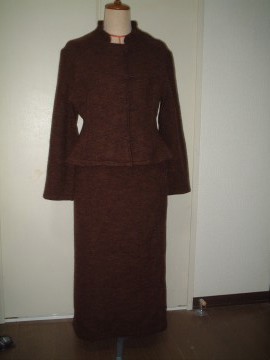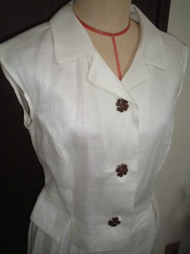 アンサンブルです。ブラウスは後ろに大きなボタン3つです。