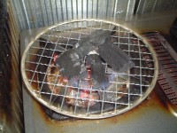 美味しく食べるには、やっぱり炭火焼き! ということで、七輪(もどき)を引っ張り出して焼くことにしました。 まずは、赤くなるまで炭を焼きます。