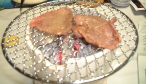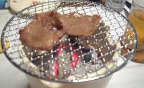 いい感じに焼けました。肉汁が落ちて炭に当たりいいにおいです。 いっただきま〜す。