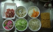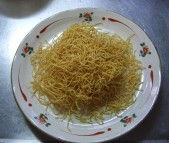 本来は細麺の生麺を揚げて作るのですが、面倒なので(^^ゞ揚げてあるものを使っています。