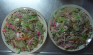 長崎ではちゃんぽんと並んで有名です。お店で食べる時は、細くてぱりぱりした「細麺」と、ちゃんぽんの麺を揚げて(店によっては炒めているところもあるようです)もっちりした食感の「太麺」がありますが、自分で作るときは細麺です。(太麺は一度挑戦しましたがあまりうまくできませんでした)