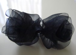 生地のアップです。バラの模様があります。 リボンのバラ3個を使って飾りにしました。